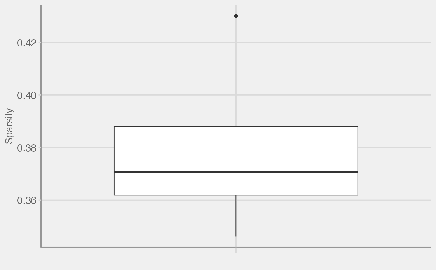 plot_sparsity( scm = NULL, assay = "score", type = c("box", "scatter"), pheno = NULL, verbose = TRUE )